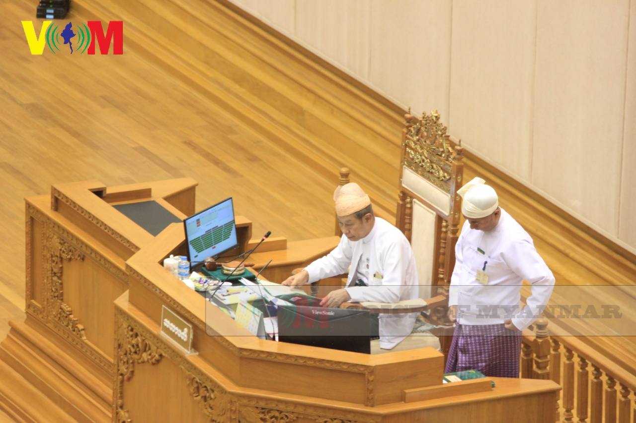 နေပြည်တော်၊ မတ်- ၁၆- ၂၀၂၆ VOICE OF MYANMAR ပြည်သူ့လွှတ်တော် သဘာပတိ အဖြစ်အမည်စာရင်း တင်သွင်းထားသူတွေဖြစ်တဲ့ ဒေါက်တာနန္ဒကျော်စွာ(ဒဂုံ မဲဆန္ဒနယ်)နဲ့ စိုင်းစိန်ဝင်း (လဲချား မဲဆန္ဒနယ်) တို့ကို ပြည်သူ့လွှတ်တော်ကိုယ်စား လှယ်တွေက မဲပေးရွေးချယ်ကြရာ ဒေါက်တာနန္ဒကျော်စွာ(ဒဂုံ မဲဆန္ဒနယ်) က ထောက်ခံမဲ ၃၄၈ မဲနဲ့ ထောက်ခံမှုအများဆုံးရရှိခဲ့ပြီး ပြည်သူ့လွှတ်တော် သဘာပတိအဖြသ် လက်မှတ်ရေးထိုးခဲ့ပါတယ်။ ဒေါက်တာနန္ဒကျော်စွာ(ဒဂုံ မဲဆန္ဒနယ်) ဆန္ဒမဲပေးခွင့်ရှိသူပေါင်း ၃၇၃ မဲ ထောက်ခံဆန္ဒမဲပေါင်း ၃၄၈ မဲ ကန့်ကွက်ဆန္ဒမဲပေါင်း ၈ မဲ ကြားနေဆန္ဒမဲပေါင်း ၁၁ မဲ ဆန္ဒမဲအရေအတွက်စုစုပေါင်း – ၃၆၇ မဲ ရရှိခဲ့ပါတယ်။ စိုင်းစိန်ဝင်း (လဲချား မဲဆန္ဒနယ်) ဆန္ဒမဲပေးခွင့်ရှိသူပေါင်း ၃၇၃ မဲ ထောက်ခံဆန္ဒမဲပေါင်း ၂၇ မဲ ကန့်ကွက်ဆန္ဒမဲပေါင်း ၃၁၈…