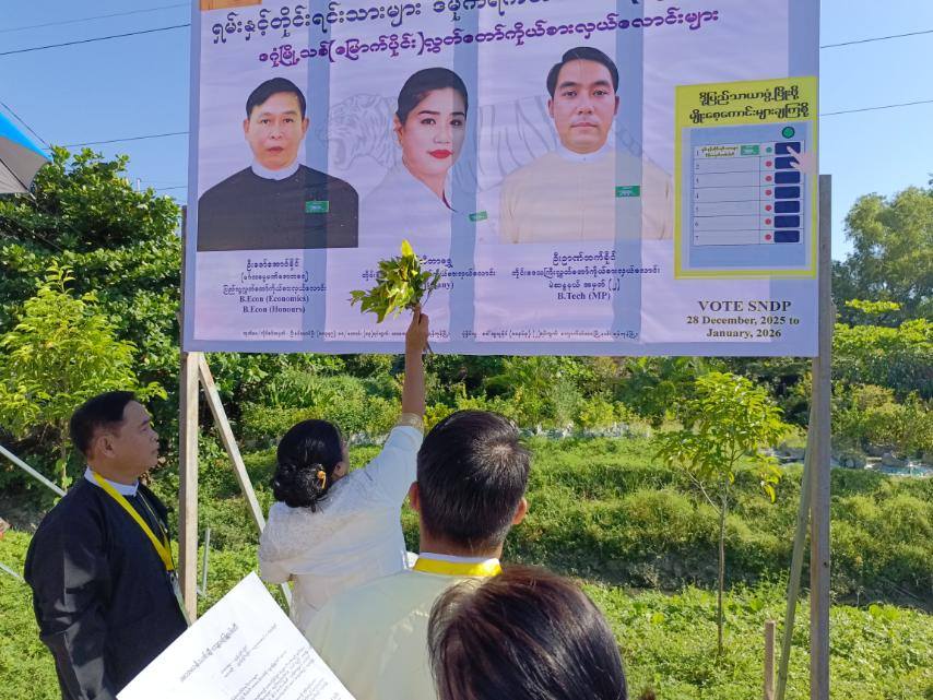 နိုဝင်ဘာ ၂၃ – ၂၀၂၅ SS (VOM) ရန်ကုန်တိုင်း၊ ဒဂုံမြို့သစ် (မြောက်ပိုင်း) မြို့နယ် သုံးနေရာမှာ ဒီကနေ့ နိုဝင်ဘာ ၂၃ ရက်၊ မနက်ပိုင်းက ရှမ်းနှင့် တိုင်းရင်းသားများ ဒီမိုကရက်တစ်ပါတီ (ကျားဖြူပါတီ) ရဲ့ အောင်နိုင်ရေး ဆိုင်းဘုတ်တင်ပွဲ ပြုလုပ်ခဲ့ပါတယ်။ ဒီကနေ့ မနက် ၉ နာရီမှစတင်ကာ မြောက်ဒဂုံမြို့နယ်၊ မဝတလမ်းဆုံမှာ ဆိုင်းဘုတ်တင်အခမ်းအနား ကျင်းပခဲ့တာဖြစ်ပြီး ဒုတိယမြောက် ဆိုင်းဘုတ်ကိုတော့ ပင်လုံ၊ ဘေလီတံတားအဆင်းရှိ သီတဂူကျောင်းနားနဲ့ တတိယဆိုင်းဘုတ်ကိုတော့ ဗထူးလမ်းနဲ့ ဦးဝိစာရ လမ်းထောင့်မှာ စိုက်ထူခဲ့တာ ဖြစ်တယ်လို့ သိရပါတယ်။ ဒါနဲ့ ပတ်သက်လို့ ကျားဖြူပါတီရဲ့ မြို့နယ်ပါတီဥက္ကဋ္ဌ ဒေါ်သီတာရွှေက “ဒီနေ့ကတော့ ဆိုင်းဘုတ် စိုက်ထူတာကိုပဲ လုပ်တာပါ။ ကိုယ်စားလှယ်လောင်း မိတ်ဆက်တာ မပါပါဘူး။ ဒီနေ့အခမ်းအနားလေးကနေ ပြည်သူတွေကို ပြောချင်တာကတော့ ကျွန်မတို့ပါတီက…