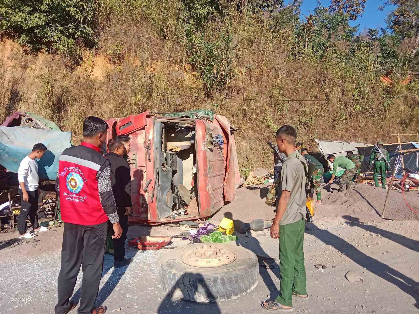 ဒီဇင်ဘာ ၁၅၊ ၂၀၂၅ Shv V (VOM) ရှမ်းပြည်နယ် မြောက်ပိုင်း၊ မူဆယ်မြို့နယ်၊ မူဆယ် – ၁၀၅ မိုင်ကြား ပြည်ထောင်စုလမ်းမပေါ် ဒီဇင်ဘာလ ၂၄ ရက်နေ့မိန်းလွဲ ၂ နာရီခွဲကျော်ခန့်က ကားတစီး ဘရိတ်ပေါက် တိုက်မိရာက လူတချို့ သေဆုံး၊ ဒဏ်ရာရကြောင်း ဒေသခံတွေဆီက သိရပါတယ်။ ဗြုံးကျောက်တင်တဲ့ ၆ ဘီးကား ဘရိတ်ပေါက်သွားလို့ လမ်းဘေးက လူတွေကိုတိုက်သွားပြီး တိမ်းမှောက်ခဲ့တာမှာ လူ ရှစ်ယောက် ဒဏ်ရာရပြီး နှစ်ယောက် သေဆုံးခဲ့ကြောင်း ပါရမီ လူမှုကူညီရေးအသင်း ဆီက သိရပါတယ်။ “သေဆုံးသွားသူတွေက ဂိတ်ရောက်လို့ ကားပေါ်ကနေ ဆင်းပြီး လမ်းလျှောက် နေသူတွေ ဖြစ်တယ်။ မူဆယ်ကပါ” လို့ အသင်း တာဝန်ရှိသူ တယောက်က ပြောပါတယ်။ ထိခိုက်ဒဏ်ရာရသူတွေထဲမှာ ကားပေါ်က လူတွေရော၊ လမ်းလျှောက်…