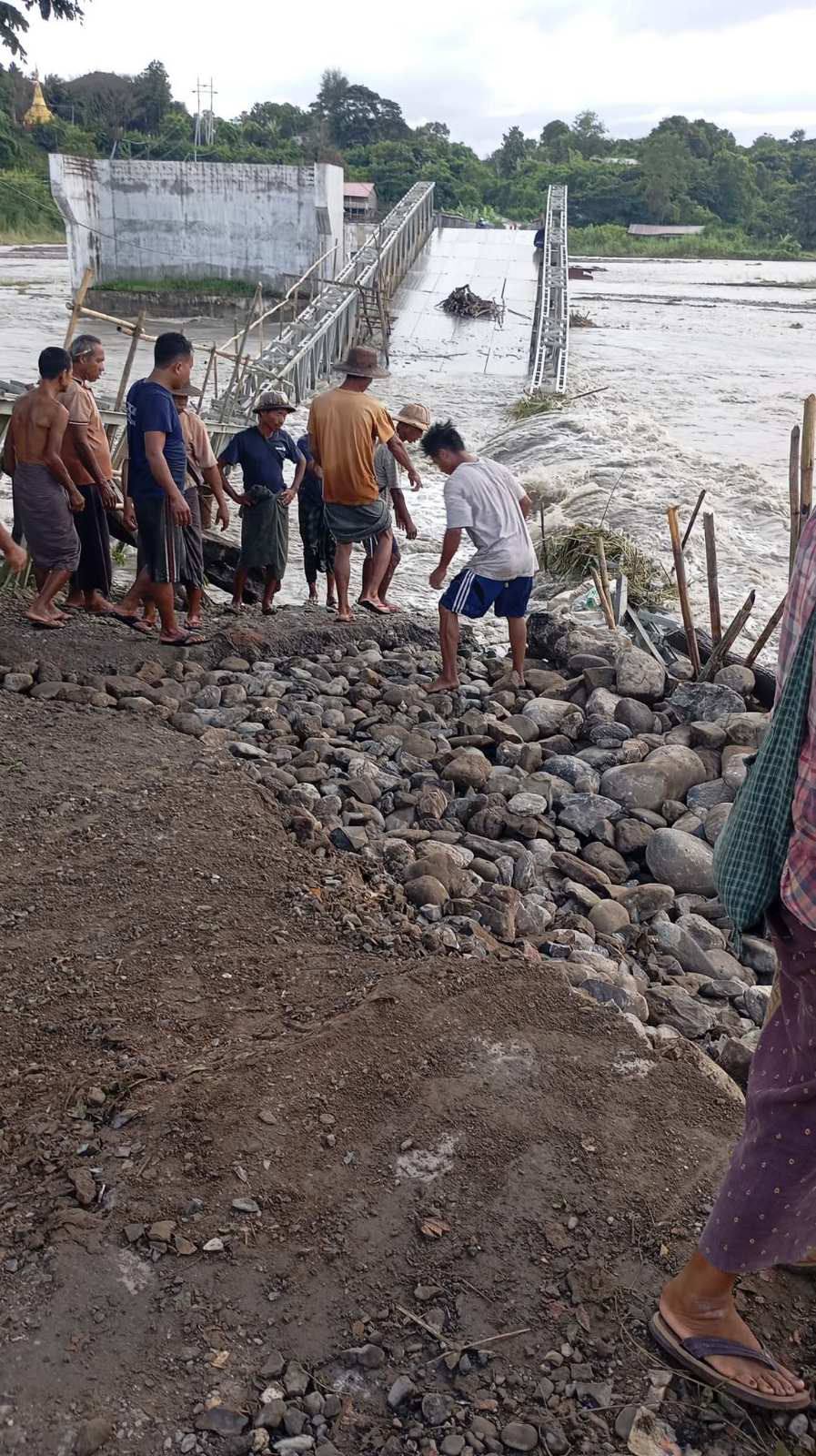 ဒါအပြင် မနေ့ စက်တင်ဘာ ၂၇ ရက်မှာ ရေတိုက်စားမှုကြောင့် ယောချောင်းတံတား တဝက်နီးပါး ရေနစ်မြုပ်ကာ တံတားအဝင် မြေသား ပဲ့ကျမှု ဖြစ်ပေါ်ခဲ့တဲ့အတွက် ပန်းဆန်ကျေးရွာမှ ဒေသခံတွေ ကိုယ်ထူကိုယ်ထ ပြန်လည် ပြုပြင်ခဲ့ရပြီး လက်ရှိအချိန်အထိ ချောင်းရေလည်း မလျော့သေးဘူးလို့ သိရပါတယ်။
