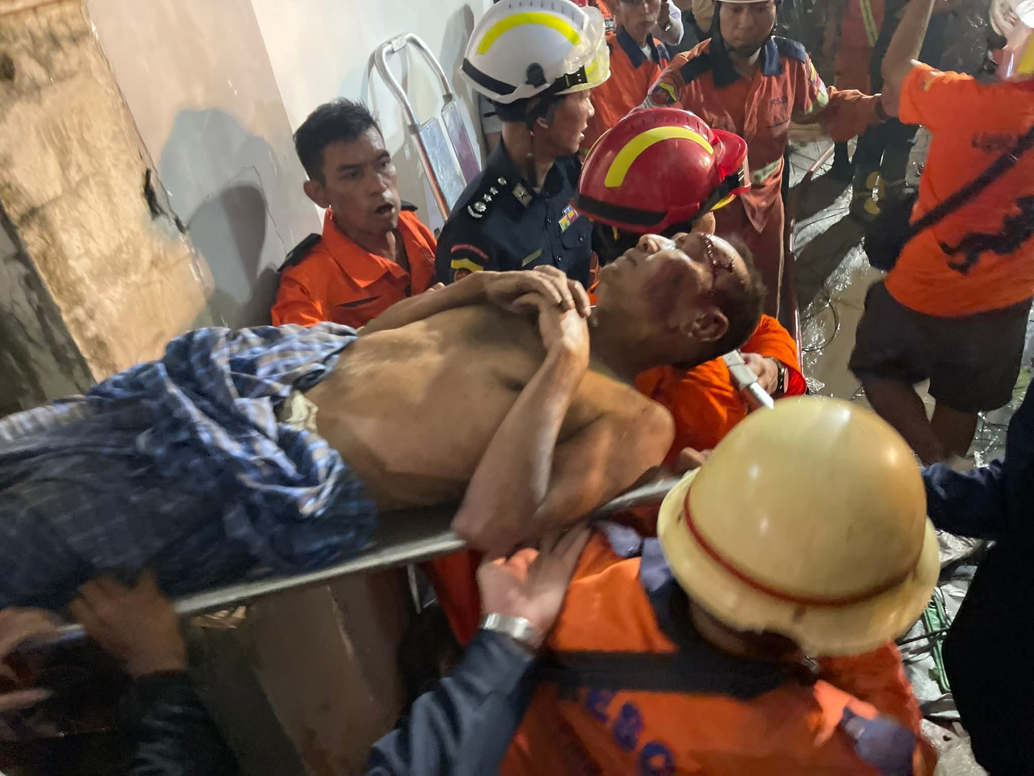 မန္တလေး၊ အောက်တိုဘာ- ၂၁- ၂၀၂၅ SA(VOM) မန္တလေးမြို့၊ ချမ်းအေးသာစံမြို့နယ်၊ အောင်နန်းရိပ်သာ အနောက်ရပ်ကွက်၊ အကွက် (၅၆၁)၊ ၃၃ x ၃၄ လမ်းကြားနဲ့ ၈၅ x ၈၆ လမ်းကြားမှာရှိ မလွန်ဆေးရိုးဝင်းအတွင်းကငလျင်ဒဏ်သင့်ထားတဲ့ မြစိမ်း တည်းခိုခန်းကို စက်ယန္တရားအသုံးပြုပြီး ဖြိုဖျက်နေချိန် နဘေးကပ်လျက်မှာရှိတဲ့နေအိမ်ပေါ်ကို ပြိုကျမှုဖြစ်လို့ ပိမိနေတဲ့ အမျိုးသားတဦးကို အသက် ရှင်လျှက် ကယ်ထုတ်နိုင်ခဲ့ပါတယ်။ ” ဦးခေါင်းနဲ့ တံတောင်ဆစ် ပွန်းပဲ့တာပဲရှိတာပါ ကျိုးတာမျိုးတော့ မရှိပါဘူး လက်ရှိမှာတော့ မန္တလေးပြည်သူ့ဆေးရုံကြီးကို ပို့ပေးထားပါတယ်၊ ဒီလူကို ထုတ်ဖို့ အောက်ကနေ ဝင်လို့လည်း မရဘူး မီးကလည်းလောင်နေတော့ အပေါ်ကနေလည်း ဖောက်ဝင်ရတယ်၊ အောက်ကနေလည်း ဖောက်ဝင်ရတယ် နောက်ဆုံးတော့ အိမ်ကို ရအောင်မြှောက်ပြီးတော့မှ ကယ်ထုတ်ခဲ့ရပါတယ် ” လို့ အဲ့ဒီဖြစ်စဥ်မှာ ရှာဖွေကယ်ဆယ်ရေးလုပ်ဆောင်နေသူတဦးက ပြောပါတယ်။ ဒီဖြစ်စဥ်ဟာ…