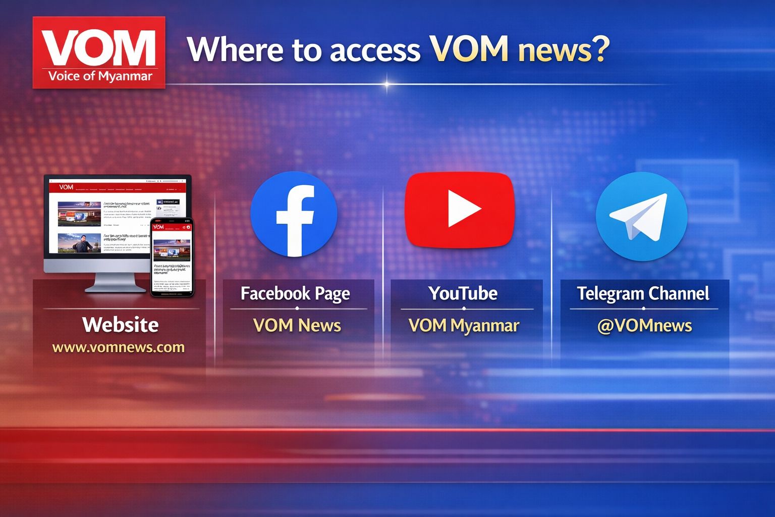 မြန်မာနိုင်ငံရဲ့ လက်ရှိအခြေအနေတွေနဲ့ နောက်ဆုံးရသတင်းတွေကို သိရှိနိုင်ဖို့ Voice Of Myanmar (VOM) သတင်းဌာနရဲ့တရားဝင် သတင်းစာမျက်နှာတွေမှာ တိုက်ရိုက်ကြည့်ရှုနိုင်ပါတယ်။ ၂၀၂၆ ခုနှစ် နောက်ဆုံးရသတင်းတွေကို အောက်ပါ လင့်ခ်များမှာ ဖတ်ရှုနိုင်ပါတယ် – VOM Website: voiceofmyanmarnews.com မှာ နိုင်ငံ ရေး၊ စီးပွားရေးနဲ့ ဒေသတွင်းသတင်းတွေကို အချိန်နှင့်တပြေးညီ ဖတ်ရှုနိုင်ပါတယ်။ VOM Facebook Page: https://www.facebook.com/share/1GH8DTRJXJ/တွင် ဗီဒီယိုသတင်းတွေနဲ့ ရုပ်သံသတင်းတွေကိုလည်း ကြည့်ရှုနိုင်ပါတယ်။ VOM Telegram Channel: https://t.me/VOMNEWS2023/18707 မှာလည်း သတင်းတွေကို အမြန်ဆုံး ကြည့်ရှုနိုင်ပါတယ်။ VOM Youtube Channel: https://www.youtube.com/channel/UCMHge_I_r2t4sISomPm392g မှာလည်း ရုပ်သံ သတင်းတွေကို ကြည့်ရှုနားဆင် နိုင်ပါတယ်။ VOM Viber Channel: https://invite.viber.com/… မှာလည်း သတင်းတွေကို ကြည့်ရှုနိုင်မှာပါ။ #voiceofmyanmar…